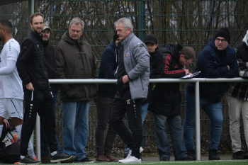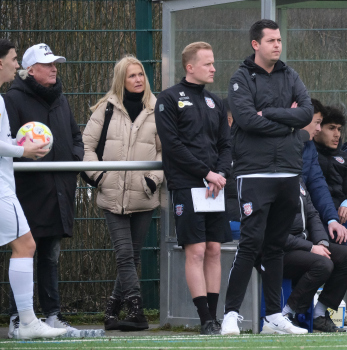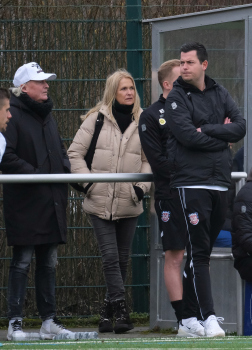 18.02.2023 xkhx Stadtallendorf Bitburger Hessenpokal 2022/2023 Viertelfinale Eintracht Stadtallendorf - FSV Frankfurt Tim Görner Trainer FSV Frankfurt, dahinter seine Eltern Präsident Michael Görner und Ehefrau Ute ********* Foto: Peter Hartenfelser