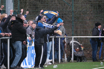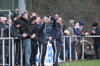 18.02.2023 xkhx Stadtallendorf Bitburger Hessenpokal 2022/2023 Viertelfinale Eintracht Stadtallendorf - FSV Frankfurt Jubel der Fans Siegtor zum 1:0 durch OLUWABORI AYOMPO FALAYE (24, FSV Frankfurt) für den FSV Frankfurt bedeutet Weiterkommen im Pokal ********* Foto: Peter Hartenfelser