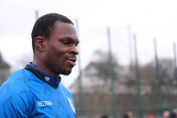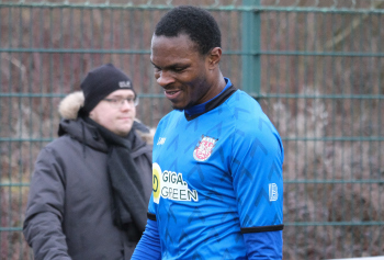 18.02.2023 xkhx Stadtallendorf Bitburger Hessenpokal 2022/2023 Viertelfinale Eintracht Stadtallendorf - FSV Frankfurt Siegtor zum 1:0 durch OLUWABORI AYOMPO FALAYE (24, FSV Frankfurt) für den FSV Frankfurt bedeutet Weiterkommen im Pokal ********* Foto: Peter Hartenfelser
