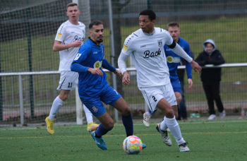 18.02.2023 xkhx Stadtallendorf Bitburger Hessenpokal 2022/2023 Viertelfinale Eintracht Stadtallendorf - FSV Frankfurt JAKE HIRST (18, FSV Frankfurt) gegen PERRY OFORI (Eintracht Stadtallendorf) ********* Foto: Peter Hartenfelser
