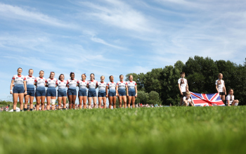 29.06.2025, xcex, GER, Hamburg, Rugby, Hamburg Seven Rugby, Rugby Europe, Eurovia, Rugby Europe Sevens Championship Series Hamburg, Team GB, Grossbritannien, Nationalhymne ********* Foto: Peter Hartenfelser
