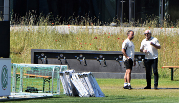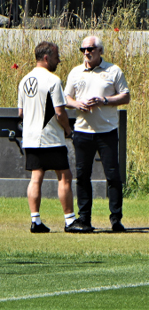 10.06.2023 Frankfurt am Main, DFB-Campus DFB Training der Deutschen Nationalmannschaft Bundestrainer Hansi Flick (Deutschland Germany) mit Sportdirektor Rudi Völler (Deutschland Germany) ********* Foto: Peter Hartenfelser