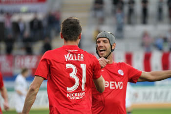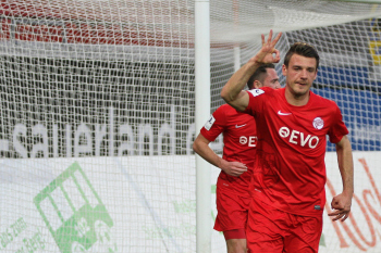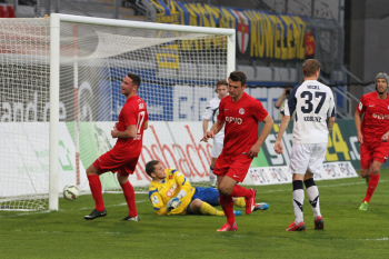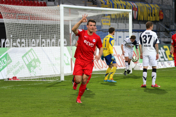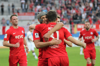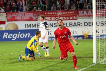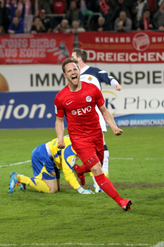 Aktion, Torjubel nach dem Tor zum 2:0 durch den Torsch?tzen Markus M?ller (OFC), Torwart Fabrice Vollborn (Koblenz) geschlagen, Stefan Hickl (Koblenz)
