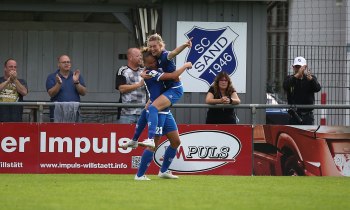 Franziska Fiebig (SCS) feiert ihr Tor zum 1:0, Torjubel SC Sand, Jubel, Freude, Emotionen, Goal celebration