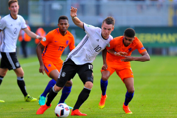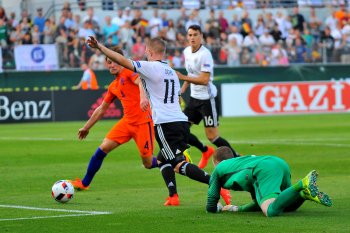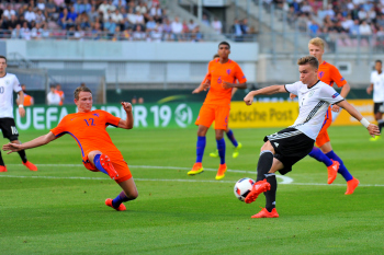 Deutschland, Sandhausen: Sport, Fussball, UEFA Under19 Championship Play-Off: Deutschland vs Niederlande am 21.07.2016, Hardtwaldstadion.