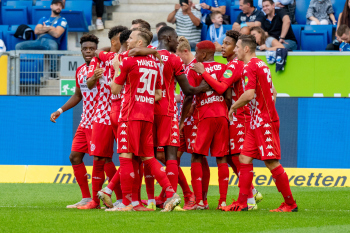 Anderson Lucoqui, Alexander Hack (1.FSV Mainz 05), Jacob Bruun Larsen, Christoph Baumgartner (TSG 1899 Hoffenheim) und Leandro Barreiro (1.FSV Mainz 05).