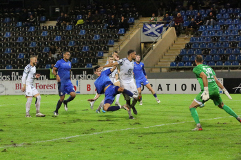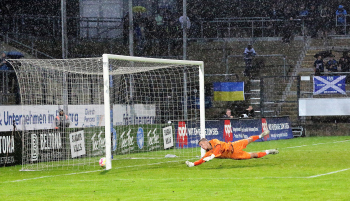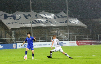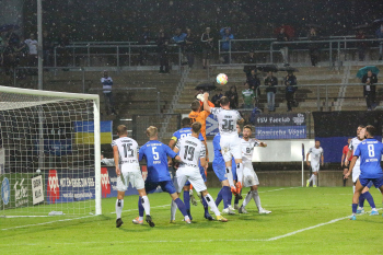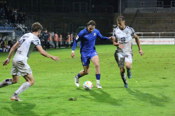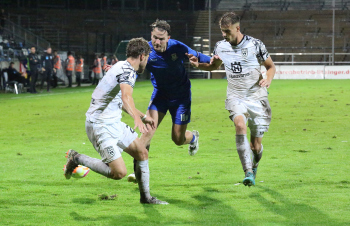 Cas Peters (10,FSV Frankfurt) gegen DAvid Grözinger (27, Ulm) und Moritz Hannesmann (19, Ulm)