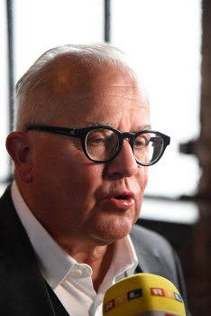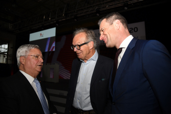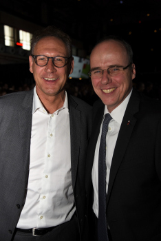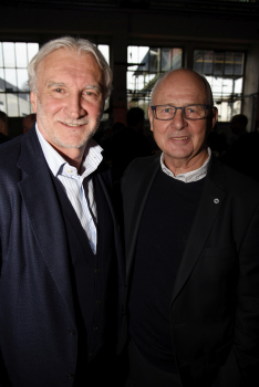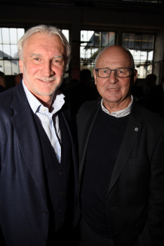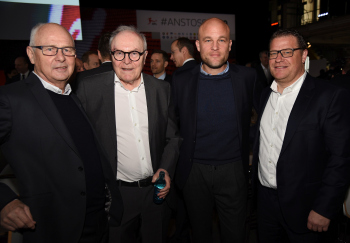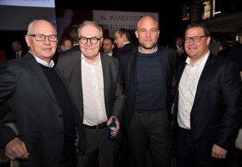 Weltmeister Bernd Hölzenbein, FAZ-Urgestein Roland Zorn, Rouven Schröder Sportvorstand des 1. FSV Mainz 05, Max Eberl Sportdirektor von Borussia Mönchengladbach