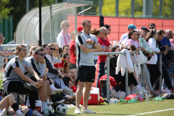 27.04.2025 xmgoodx Offenbach Fussball Regionalliga Süd Saison 2024/2025 Frauen Kickers Offenbach gegen Eintracht Frankfurt U19 Trainer Benjamin Becker Eintracht Frankfurt U19 ********* Foto: Peter Hartenfelser