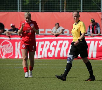 27.04.2025 xmgoodx Offenbach Fussball Regionalliga Süd Saison 2024/2025 Frauen Kickers Offenbach gegen Eintracht Frankfurt U19 Franziska Bohrer (8, OFC Frauen), Schiedrichterin Sabine Mandler ********* Foto: Peter Hartenfelser