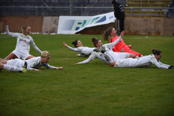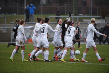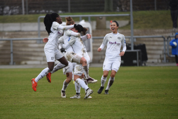 Tor zum 0:1 Sieg durch Torschützin Irini Ioannidou (SGS Essen ) die durch die Mitspielerinnen gefeiert wird, Torjubel