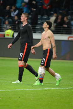 Spielende, Haris Seferovic (Eintracht Frankfurt) verschenkt nicht nur sein Trikot sondern auch noch seine Hose und steht nur noch in Unterw?sche da