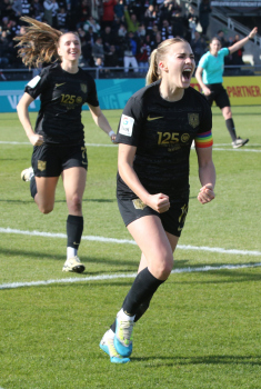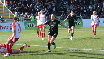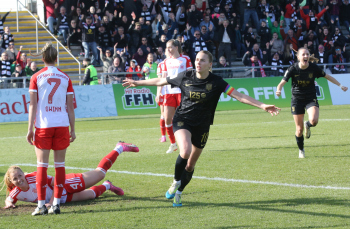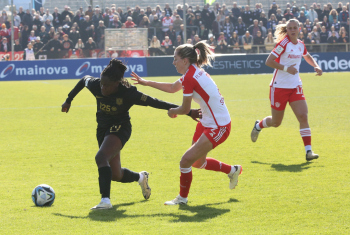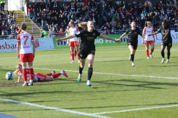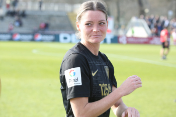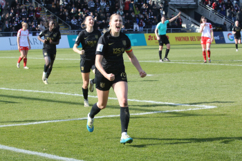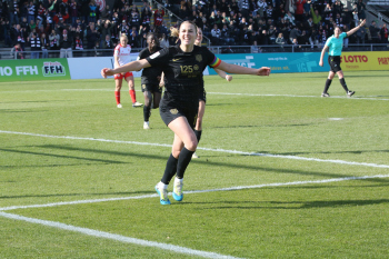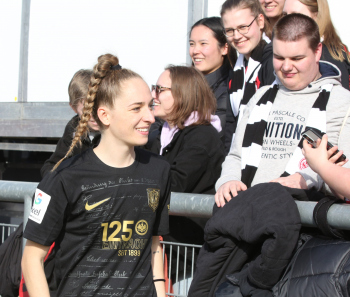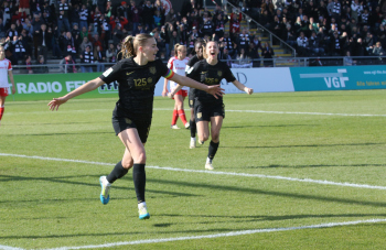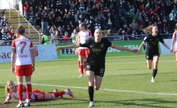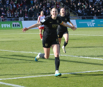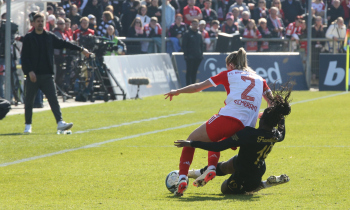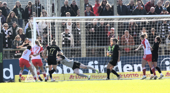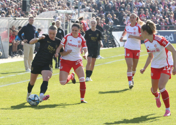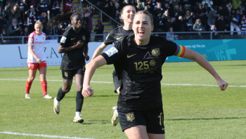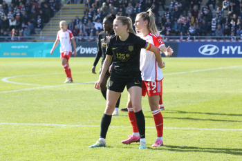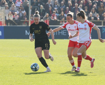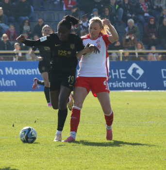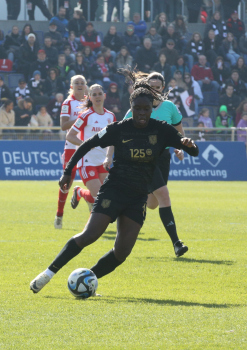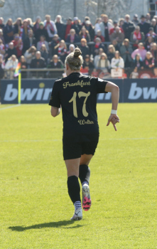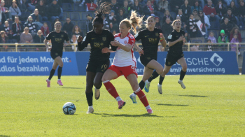 Klara Bühl (17, FCB) erzielt das Tor zum 0:1, Torwart Torwart Stina Johannes (1, Eintracht Frankfurt Frauen)