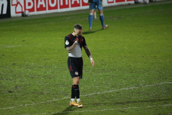 Enttaeuschung, Trauer, Frust bei Wehen Wiesbaden nach der Niederlage, hier Philip Tietz (SVWW)