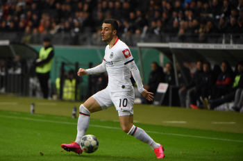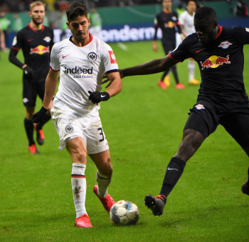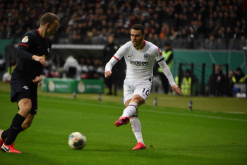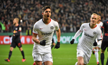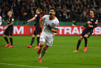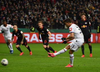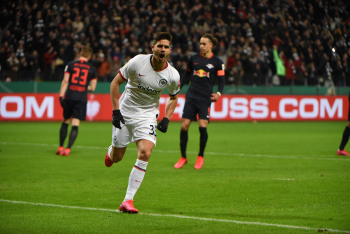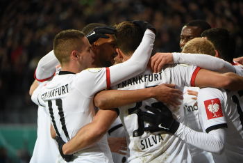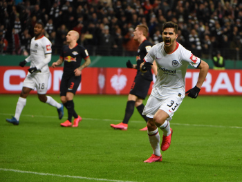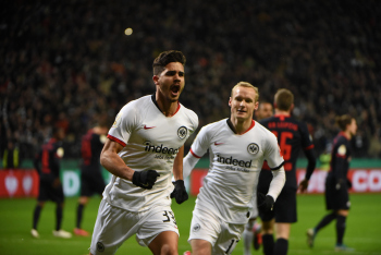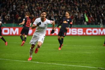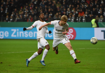 Jubel nach dem Tor zum 1:0 durch Elfmeterschützen André Miguel Valente da Silva (33, Eintracht Frankfurt) hier mit Sebastian Rode (17, Eintracht Frankfurt)