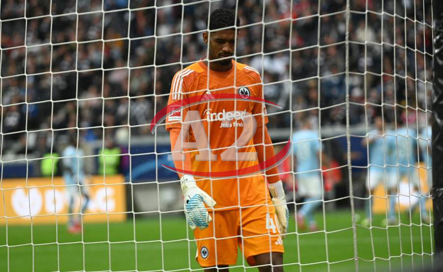 Torwart Kaua Santos (40, Eintracht Frankfurt), Nathaniel Brown (21, Eintracht Frankfurt) am Boden
