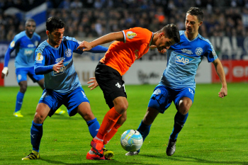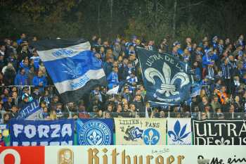 Torwart Michael ESSER (SV Darmstadt 98), Fabian HOLLAND (SV Darmstadt 98), Aytac SULU (SV Darmstadt 98), Immanuel HOEHN (SV Darmstadt 98), Antonio-Mirko COLAK (SV Darmstadt 98) bedanken sich bei Ihren Fans.