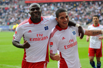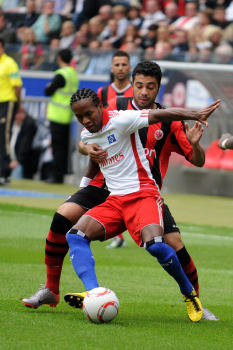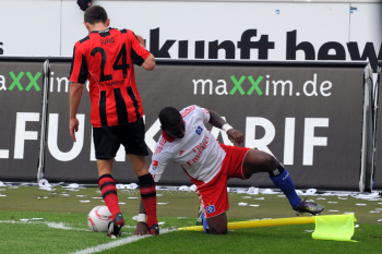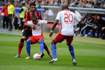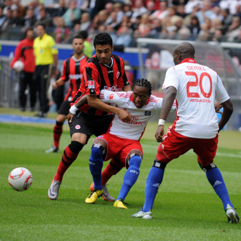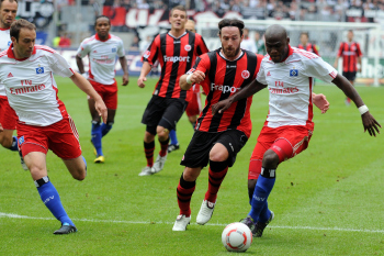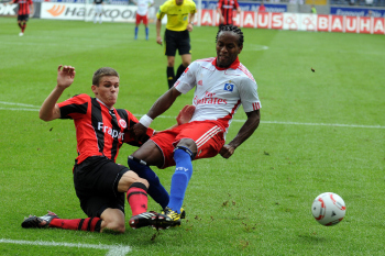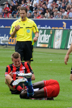 28.08.2010, 1. Bundesliga, Eintracht Frankfurt - Hamburger SV, Schiedsrichter Felix Zwayer, Maik Franz (Eintracht Frankfurt), Jonathan Pitroipa