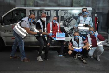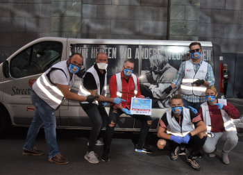 Aktion der Organisatoren des Frankfurter Oktoberfestes in Kooperation mit Streetangel e. V.-