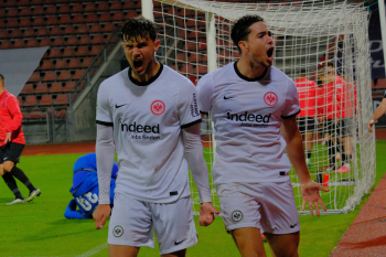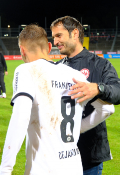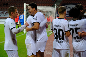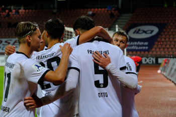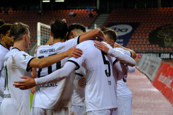 Torjubel nach dem Tor zum 1:2 durch Fynn Otto (5, Eintracht Frankfurt II), Fynn Otto (5, Eintracht Frankfurt II) und Dario Gebuhr (4, Eintracht Frankfurt II)