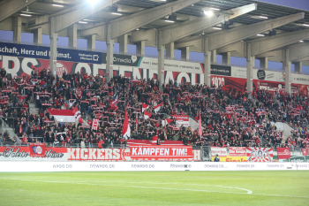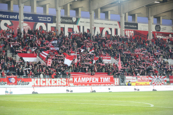 19.03.2025 xmgoodx Offenbach am Main, Sparda-Bank-Hessen Stadion - Stadion Bieberer Berg Hessenpokal Viertelfinale Kickers Offenbach (OFC) - SV Wehen Wiesbaden (SVWW) Der Stehblock der OFC-Fans mit Fahnen und Bannern ********* Foto: A2Bildagentur