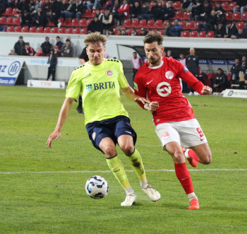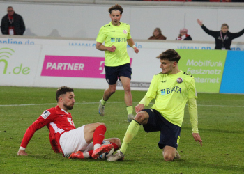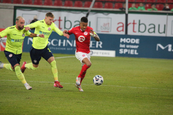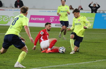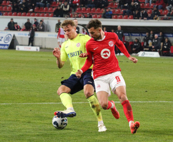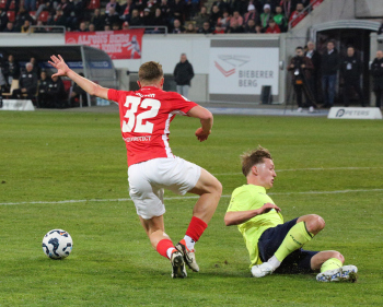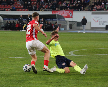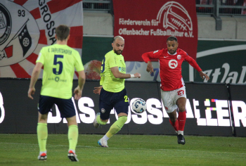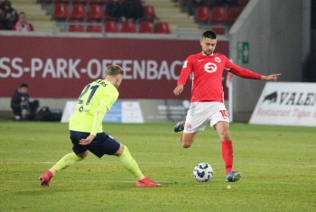 19.03.2025 xmgoodx Offenbach am Main, Sparda-Bank-Hessen Stadion - Stadion Bieberer Berg Hessenpokal Viertelfinale Kickers Offenbach (OFC) - SV Wehen Wiesbaden (SVWW) Felix Luckeneder (SVWW) gegen Dimitrij Nazarov (10, OFC) ********* Foto: A2Bildagentur