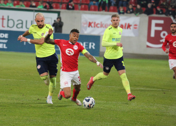 19.03.2025 xmgoodx Offenbach am Main, Sparda-Bank-Hessen Stadion - Stadion Bieberer Berg Hessenpokal Viertelfinale Kickers Offenbach (OFC) - SV Wehen Wiesbaden (SVWW) Fatih Kaya (SVWW) gegen Ronny Marcos (31, OFC) ********* Foto: A2Bildagentur