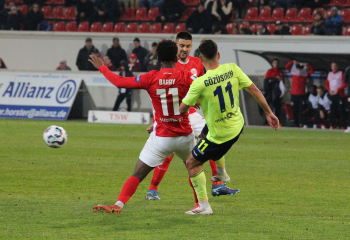 19.03.2025 xmgoodx Offenbach am Main, Sparda-Bank-Hessen Stadion - Stadion Bieberer Berg Hessenpokal Viertelfinale Kickers Offenbach (OFC) - SV Wehen Wiesbaden (SVWW) Dimitrij Nazarov (10, OFC), Boubacar Barry (11, OFC) gegen Tarik Gözüsirin (SVWW) ********* Foto: A2Bildagentur