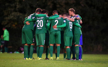 28.09.2016 xcex Deutschland, Fussball, Regionalliga Saison 2016/2017, Hessenpokal Hessen-Pokal Achtelfinale SV 07 Geinsheim - Teutonia Watzenborg Steinberg Mannschaftskreis, Mannschaft von Watzenborn Steinberg im Kreis zusammen ***** Foto: A2/Hartenfelser