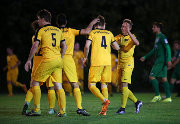 28.09.2016 xcex Deutschland, Fussball, Regionalliga Saison 2016/2017, Hessenpokal Hessen-Pokal Achtelfinale SV 07 Geinsheim - Teutonia Watzenborg Steinberg Torjubel SV 07 Geinsheim, Jubel, Freude, Emotionen ***** Foto: A2/Hartenfelser