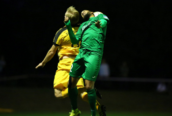 28.09.2016 xcex Deutschland, Fussball, Regionalliga Saison 2016/2017, Hessenpokal Hessen-Pokal Achtelfinale SV 07 Geinsheim - Teutonia Watzenborg Steinberg Raffael Szymanski (Watzenborn) gegen Kim Ginkel (Geinsheim) ***** Foto: A2/Hartenfelser