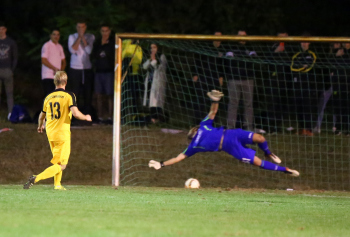 28.09.2016 xcex Deutschland, Fussball, Regionalliga Saison 2016/2017, Hessenpokal Hessen-Pokal Achtelfinale SV 07 Geinsheim - Teutonia Watzenborg Steinberg Dominik Auer (Geinsheim) verwandelt einen Elfmeter ***** Foto: A2/Hartenfelser