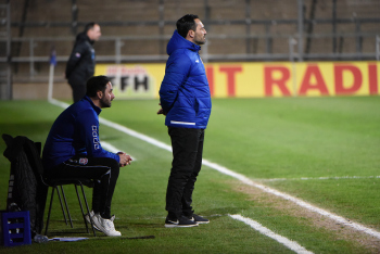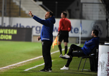 23.03.2021 Frankfurt, Fussball, PSD Arena, Regionalliga Suedwest, Saison 2020/2021, FSV Frankfurt - SSV Ulm Trainer Holger Bachtaler (Ulm) *** Foto: Peter Hartenfelser
