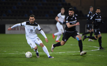 23.03.2021 Frankfurt, Fussball, PSD Arena, Regionalliga Suedwest, Saison 2020/2021, FSV Frankfurt - SSV Ulm Denis Mangafic (30, FSV Frankfurt) gegen Burak Coban (Ulm) *** Foto: Peter Hartenfelser