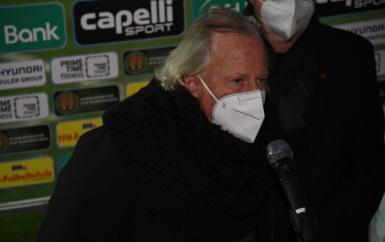 23.03.2021 Frankfurt, Fussball, PSD Arena, Regionalliga Suedwest, Saison 2020/2021, FSV Frankfurt - SSV Ulm FSV Frankfurt Präsident Michael Görner vorbildlich mit medizinischer Maske *** Foto: Peter Hartenfelser