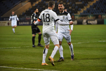23.03.2021 Frankfurt, Fussball, PSD Arena, Regionalliga Suedwest, Saison 2020/2021, FSV Frankfurt - SSV Ulm Torjubel nach dem Tor zum 1:0 durch Lennart Stoll (Ulm) *** Foto: Peter Hartenfelser