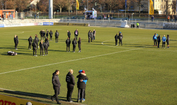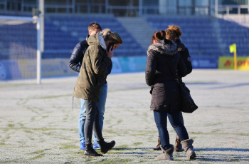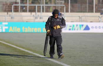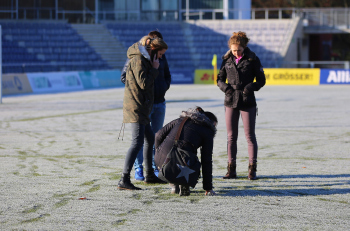 Platzbegehung vor dem Spiel, Entscheidung Spielbeginn vertagt, Schneefall, Frost, Spielabsage