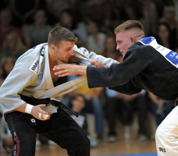 21.09.2019,.xxx, 1. Judo Bundesliga, EOS Sportfabrik, Offenbach, 1. Judo Club Samurai Offenbach gegen Judo Club Leipzig, in schwarz Nicolas Gerber (Samurai Offenbach); in weiss Richard Fiedler (JC Leipzig);