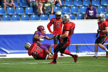 Roscoe Baptist (Universe, 22) und Quaterback Marcus McDade (Universe, 2)