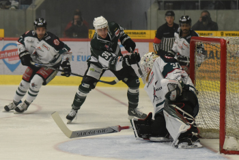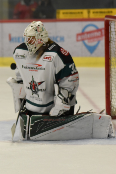 Simon FISCHHABER (Starbulls Rosenheim), Matt McKNIGHT (SC Bietigheim Steelers), Goalie Lukas STEINHAUER (Starbulls Rosenheim).