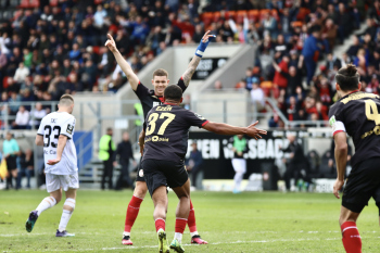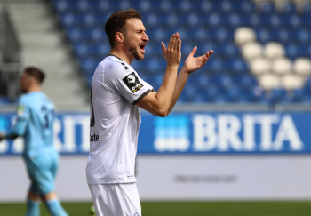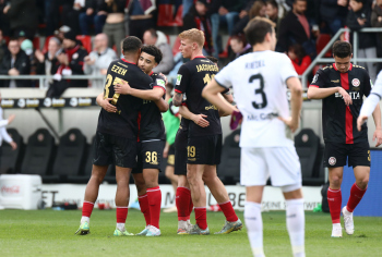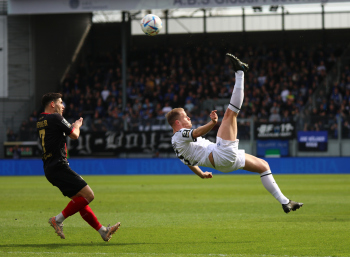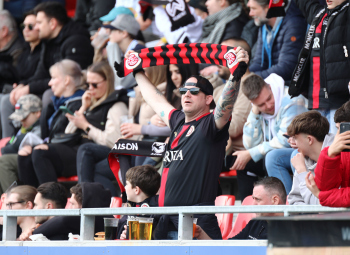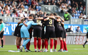 18.03.2023, xcex, GER, Wiesbaden, BRITA-Arena, Fussball, 3. LIGA, Saison 2022/2023, Spieltag 28, SVWW, SV Wehen Wiesbaden - SV Waldhof Mannheim, Fans, Schal, Stimmung, Hymne, Symbolbild