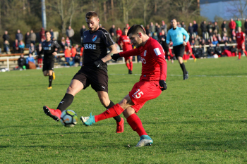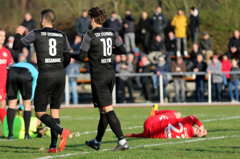 Torjubel beim Torschützen Shqipon Bektashi (TSV Steinbach)nach dem Tor zum 0:1,am Boden Dennis Schulte (OFC)