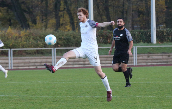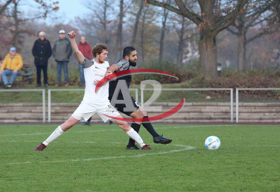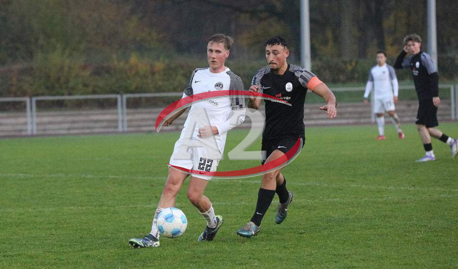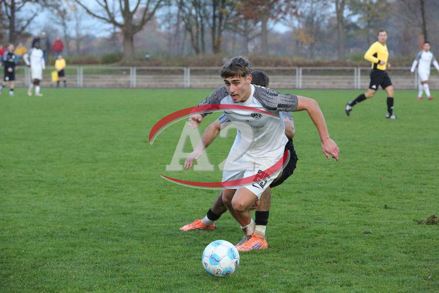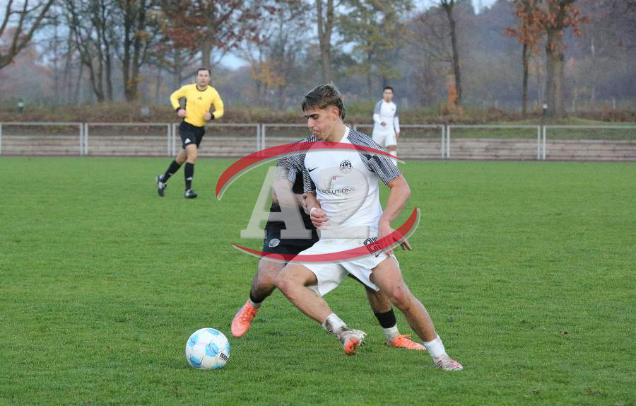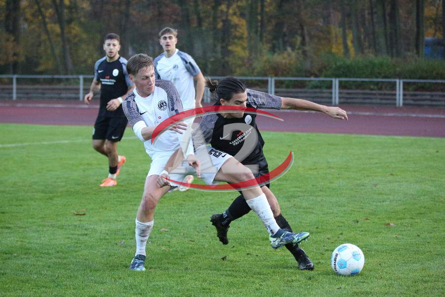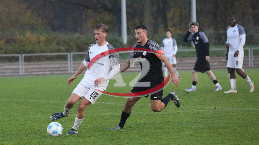 16.11..2025 xmgoodx, Obertshausen Gruppeliga GL Saison 2025/2026 Kickers Obertshausen - OSC Rosenhöhe Marius Krikser (Kickers Obertshausen ) gegen Mohammed Hakimi (Rosenhöhe) ********* Foto: Peter Hartenfelser