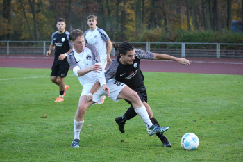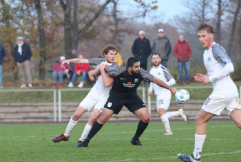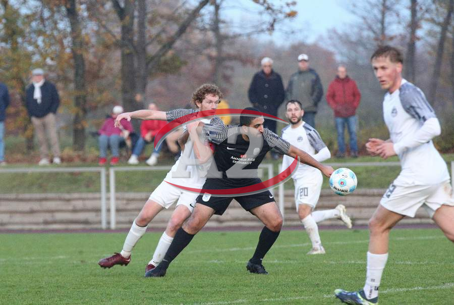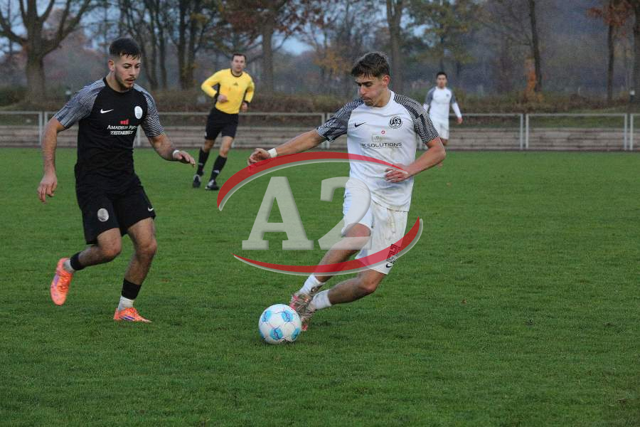 16.11..2025 xmgoodx, Obertshausen Gruppeliga GL Saison 2025/2026 Kickers Obertshausen - OSC Rosenhöhe Simon Weirich (Kickers Obertshausen ) hinten Mohammed Hakimi (Rosenhöhe) ********* Foto: Peter Hartenfelser