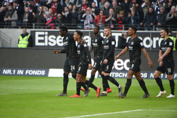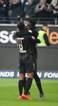 Torjubel nach dem Tor zum 1:0 durch den Torschützen da Costa, Danny (24e Eintracht Frankfurt) hier mit de Guzmán, Jonathan (6, Eintracht Frankfurt)
