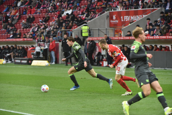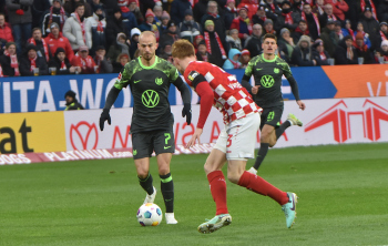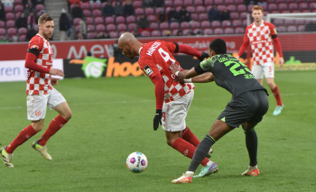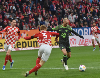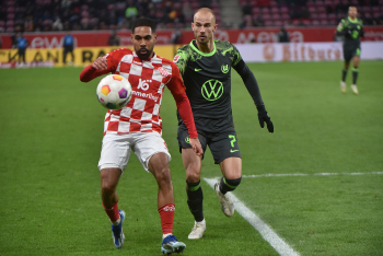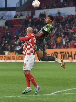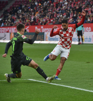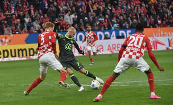 Torschuss Vaclav Cerny (7, VfL Woflsburg) ausgespielt Sepp van den Berg (3, FSV Mainz 05) und Edimilson Fernandes 20, FSV Mainz 05)