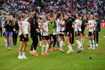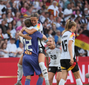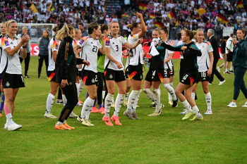 16.07.2024 xkhx Hannover Fussball European Qualifiers Frauen, Nationalmannschaft Deutschland - Österreich Schlussjubel nach dem Sieg der Deutschen Nationalmannschaft ********* Foto: Peter Hartenfelser