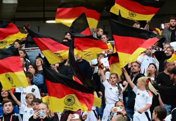 16.07.2024 xkhx Hannover Fussball European Qualifiers Frauen, Nationalmannschaft Deutschland - Österreich Fans der Deutschen Frauen Nationalmannschaft Jubeln und zeigen Flagge ********* Foto: Peter Hartenfelser