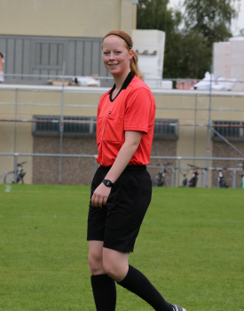 Caren Biermann (13, TSGNeu-Isenburg) gegen Torwart HEIDRUN SUNNA SIGURDARDOTTIR (Schott)