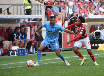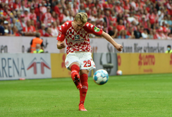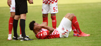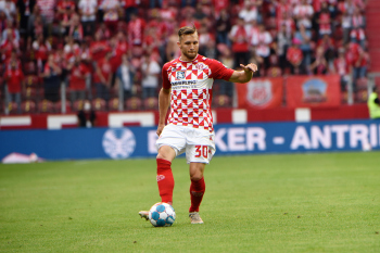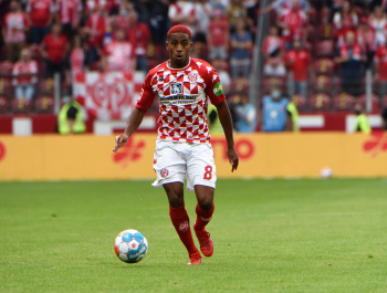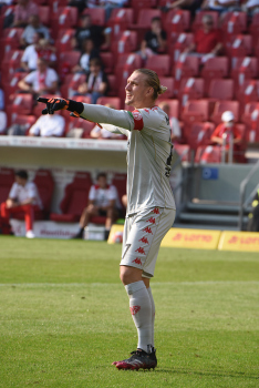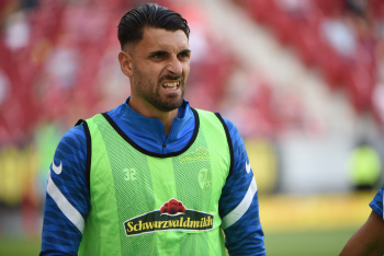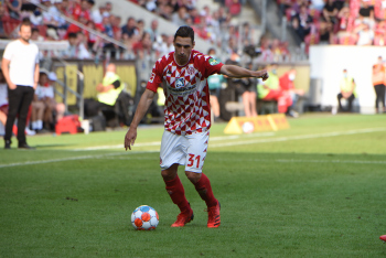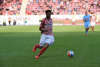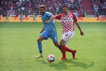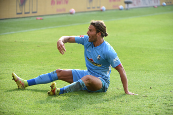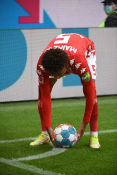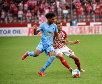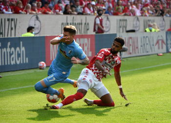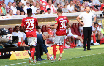 Trainer Christian Streich (Freiburg) sichert sich den Ball und wirft ihn Kevin Schade (Freiburg zu, vor ANDERSON LUCOQUI (23, 1. FSV Mainz 05) und Silvan Widmer (30, 1. FSV Mainz 05)